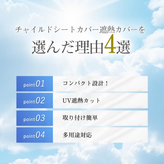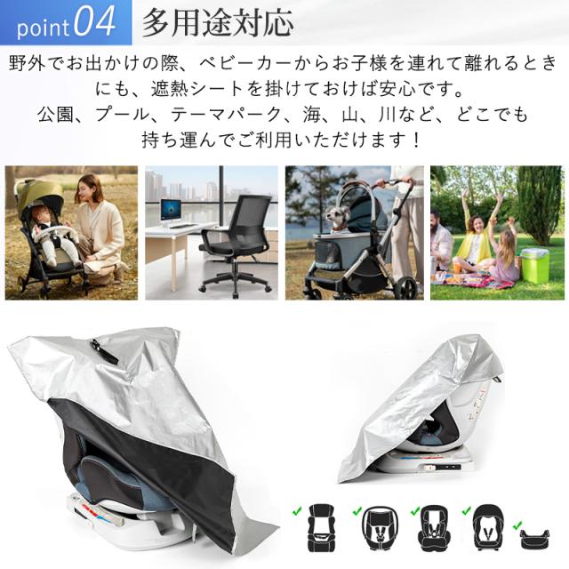 チャイルドシートカバー 遮熱 遮熱カバー 遮光 防熱 カバー 断熱 サンシェード 断熱カバー 日よけ 新生児 車 保護 日差し 防止 コンパクト 持ち運び 汚れ防止 簡易 取り付け簡単 熱中症対策 日除け遮熱カバー 1歳 2歳 3歳 4歳 5歳 6歳 公園 お出かけ テーマパーク 野外 日差し対策 赤ちゃん ベビー 子ども 子供 キッズ 自転車 折りたたみ フック 収納 暑さ対策 熱い 夏 おしゃれ かわいい 可愛い