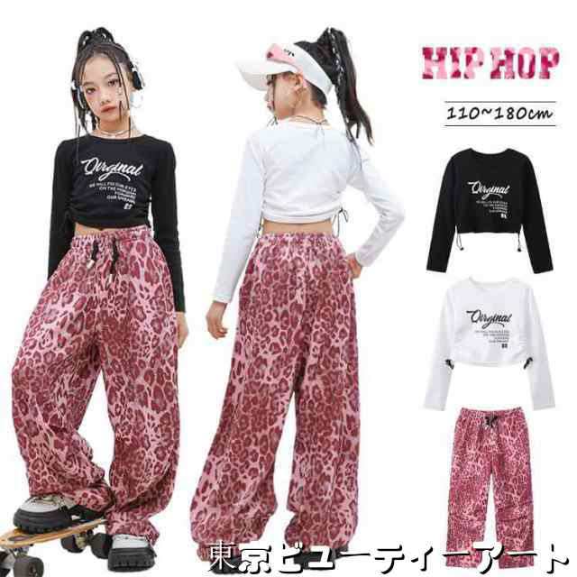 ヒョウ柄 キッズダンス衣装 セットアップ 子供服 女の子 トップス へそ出し 長袖 黒 白 ダンス服 キッズ ガールズ パンツ ピンク ワイドパンツ ロングパンツ ゆったり 韓国 演出 舞台 おしゃれ 110-180
