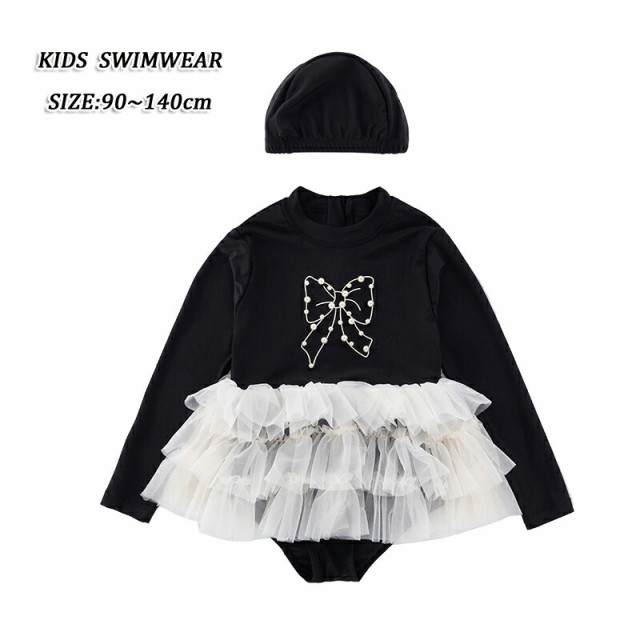 スクール水着 女の子 ワンピース 長袖ブラック子供水着 女の子ミズギワンピース140 スクール水着女児プール 海水浴 スイミング夏 水遊び110cm 可愛い 幼稚園 小学生 中学生 みずぎUPF50+