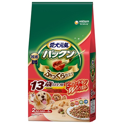 ユニ・チャーム 愛犬元気 パックン 13歳以上用 ビーフ・ささみ・緑黄色野菜・小魚入り2kg