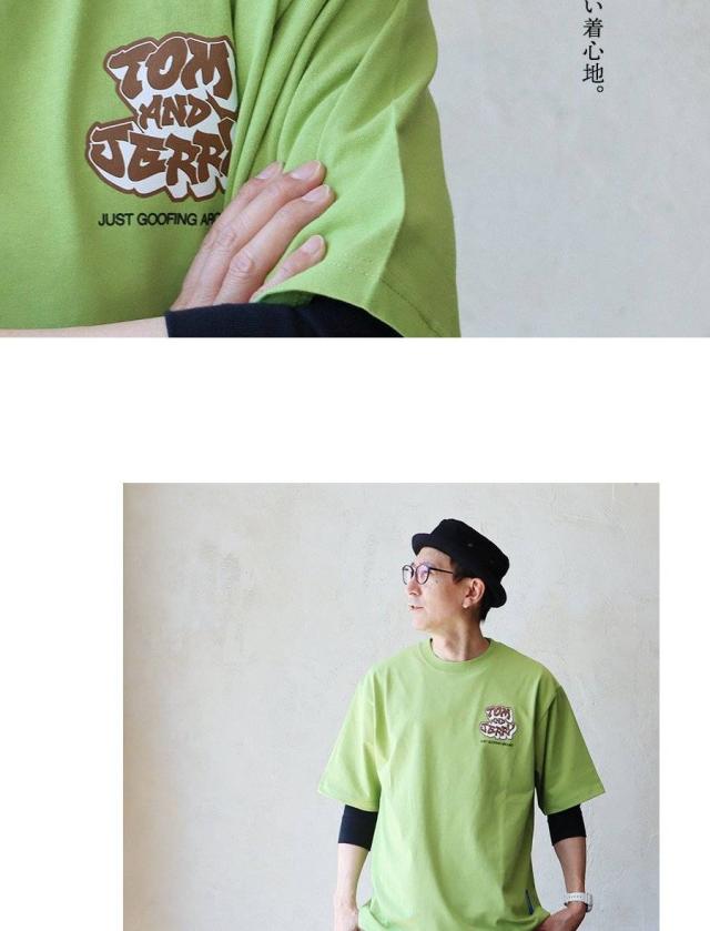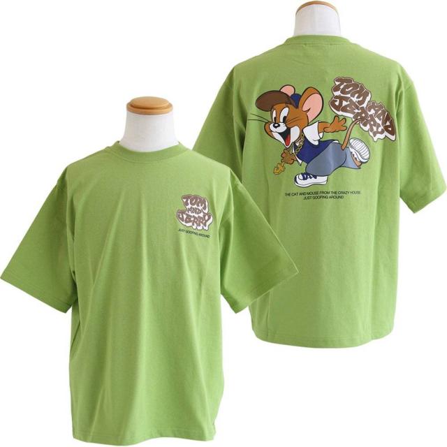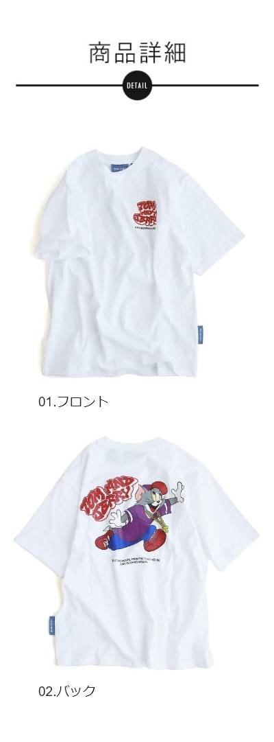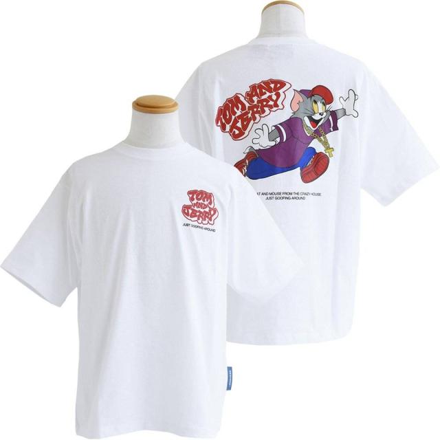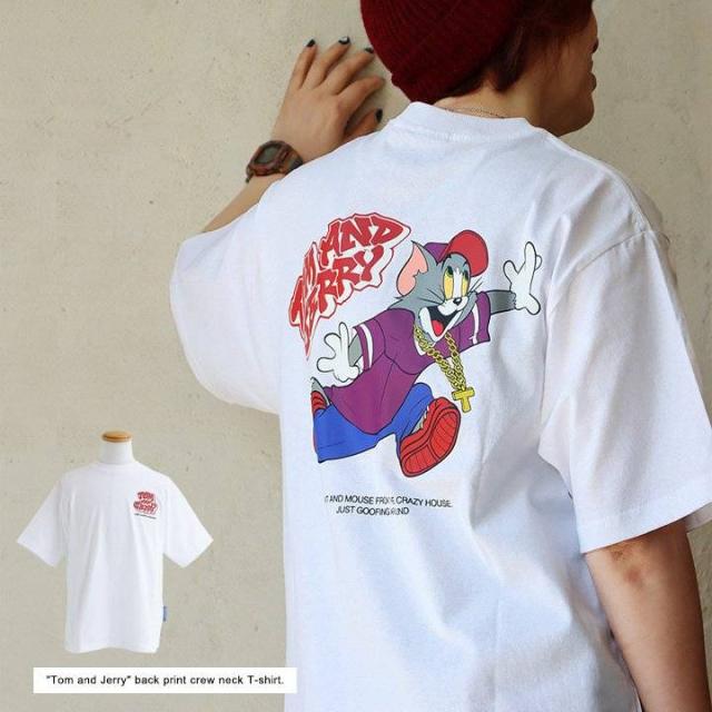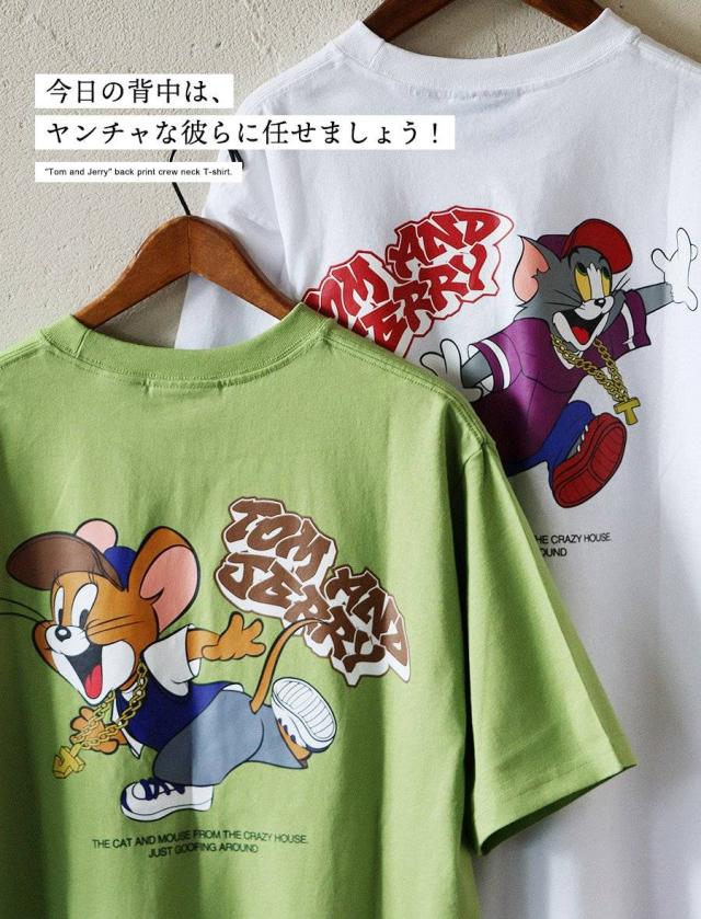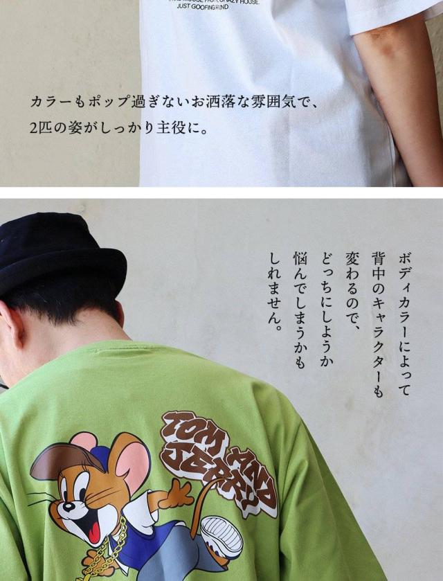 Tシャツ 5分袖 メンズ レディース クルーネック バックプリント トム&ジェリー キャラクター アニマル 綿100 コットン ゆったり 大きいサイズ 体型カバー カジュアル 夏 パティ