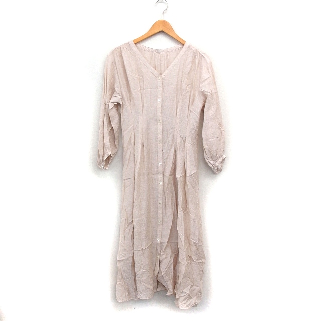 【中古】スローブ イエナ SLOBE IENA シャツ フレア ワンピース 7分袖 ロング丈 無地 ピンクベージュ /FT レディース