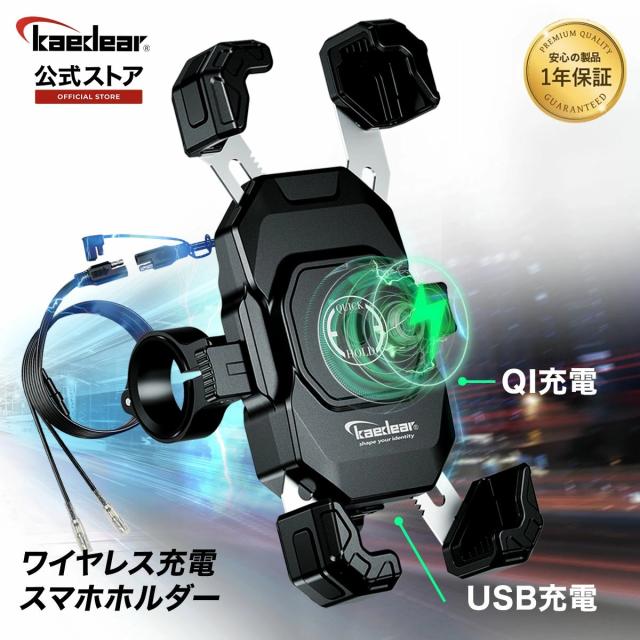 Kaedear(カエディア) バイク スマホホルダー QI ワイヤレス充電 防水 USB電源 携帯ホルダー バイク用 充電器 原付 オートバイ スクーター クイックホールド? QI USB KDR-M11AP