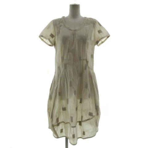 【中古】t.b ティービー センソユニコ ワンピース Uネック コクーン 半袖 ミディ丈 コットン混 ベージュ 40