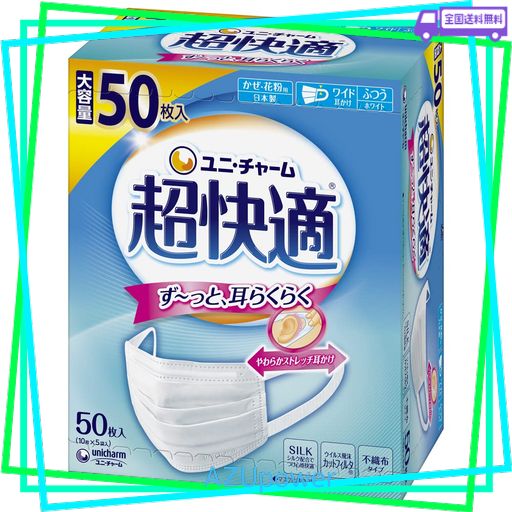 超快適マスク 風邪・花粉用 プリーツタイプ 不織布マスク 日本製 ふつうサイズ 50枚入 〔PM2.5対応 日本製 ノーズフィットつき〕 (99% ウィルス飛沫カットフィルタ) ユニチャーム