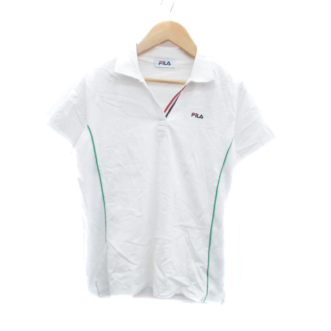 【中古】フィラ FILA カットソー スキッパーカラー 半袖 切替 刺繍 L オフホワイト /HO14 レディース