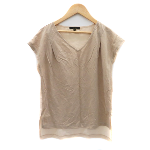 【中古】リエンダ rienda カットソー 半袖 Vネック F ベージュ /YK36 レディース