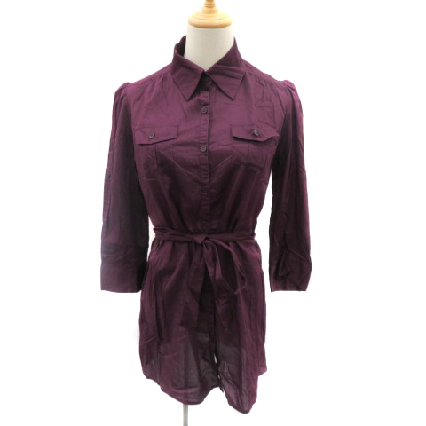 【中古】ナチュラルネーム チュニック シャツ ブラウス 七分袖 ウエストリボン 11AR ダークパープル レディース
