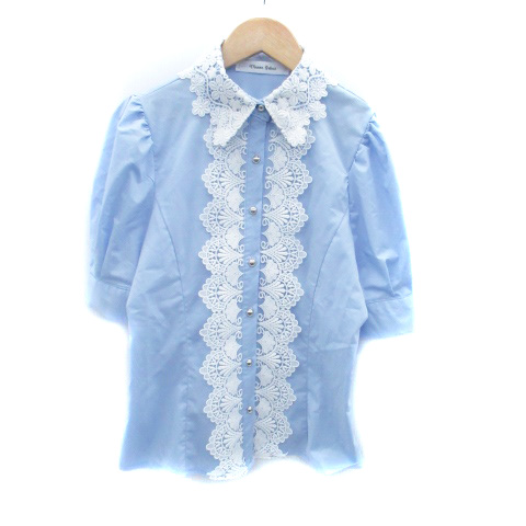 【中古】マノントーキョー Manon Select シャツ ブラウス ステンカラー 半袖 切替 F 青 ブルー オフホワイト