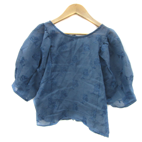 【中古】ミスティック ブラウス カットソー 半袖 花柄 刺繍 バックボタン オーガンジー F 青 レディース