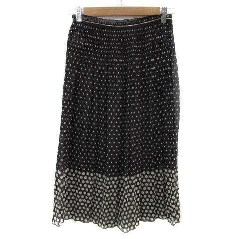 【中古】ジョルジュレッシュ プリーツスカート シアースカート ロング丈 ドット柄 38 M 黒 オフホワイト レディース