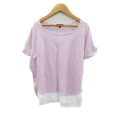 【中古】インディヴィ INDIVI カットソー 半袖 シースルー ライトパープル 白 ホワイト /YK46 レディース