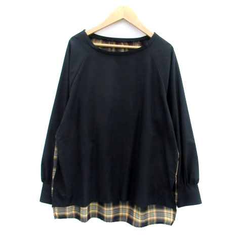 【中古】ビームスライツ ブラウス カットソー ラウンドネック 長袖 チェック柄 切替 38 M マルチカラー 黒