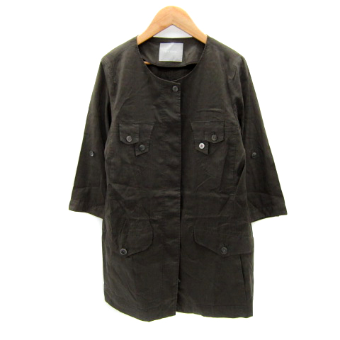 【中古】ケーティー キヨコ タカセ リノ ノーカラージャケット ミリタリー 七分袖 リネン 11 カーキ レディース