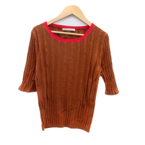 【中古】レディラックルカ LADY LUCK LUCA サマーニット カットソー 五分袖 リブ 茶色 赤 レディース