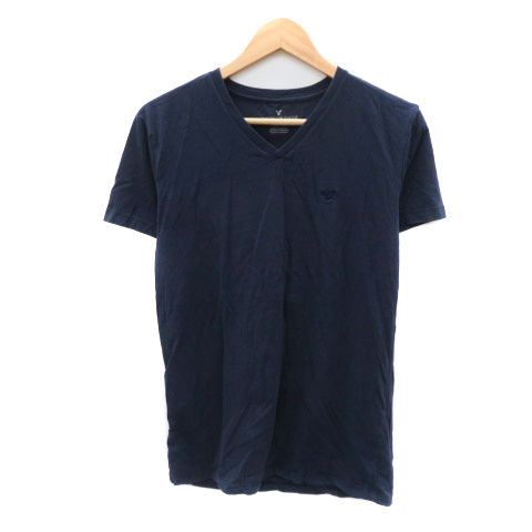 【中古】アメリカンイーグルアウトフィッターズ Tシャツ カットソー 半袖 Vネック ロゴ刺? XS 紺 ネイビー メンズ