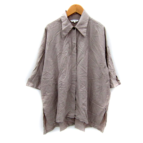 【中古】プラステ PLST ブラウス シャツ 七分袖 無地 オーバーサイズ シルク混 M ライトグレー /SY25 レディース