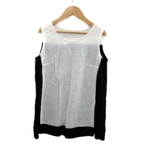 【中古】コムサデモード タンクトップ ミドル丈 ラウンドネック 無地 バイカラー 9 黒 ブラック 白 レディース