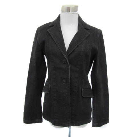 【中古】ミッシェルクラン デニムテーラードジャケット 大きいサイズ 44 XXL チャコールブラック レディース