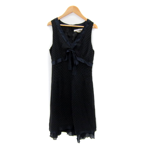【中古】イブルース i Blues ワンピース ミモレ丈 Vネック ドット柄 リボン シルク 40 L ネイビー レディース