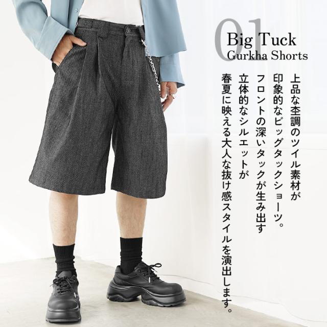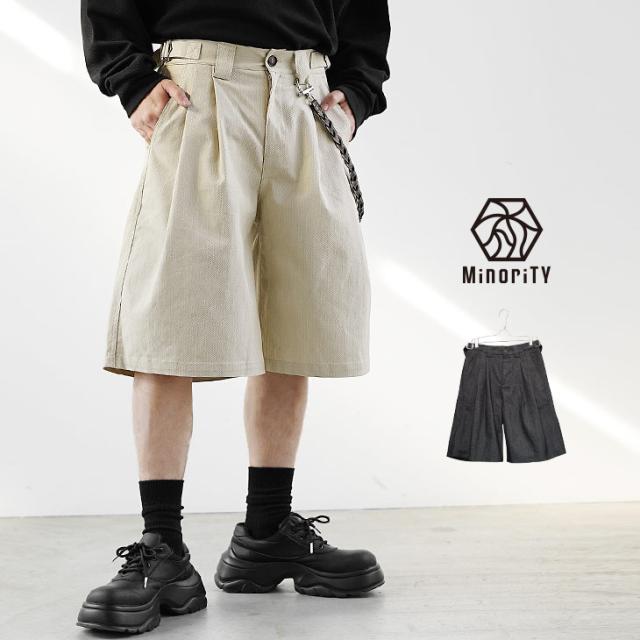 ハーフパンツ メンズ ひざ下 グルカ ハーフパンツ メンズ おしゃれ グルカパンツ メンズ 無地 半ズボン メンズ パンツ ショート ショートパンツ メンズ チノパン ツイル素材 タックパンツ 夏 メンズ ワイドパンツ 短パン 韓国 ファッション 春服 夏服 マイノリティ