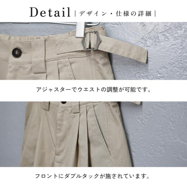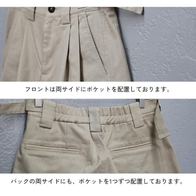 ●DESIGN(デザイン)「大人の夏を品よく、カジュアルに」フロントに施された深いタックが立体的なシルエットを創り出し、品の良い大人のヌケ感を演出するハーフパンツ。杢調のツイル素材と膝下の丈感で子供っぽくならず大人な雰囲気に。夏らしい軽やかなカジュアルコーデにぴったりのアイテムです。