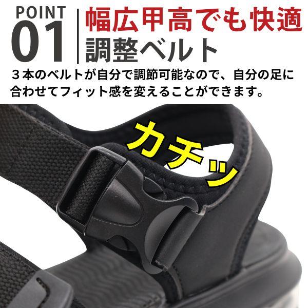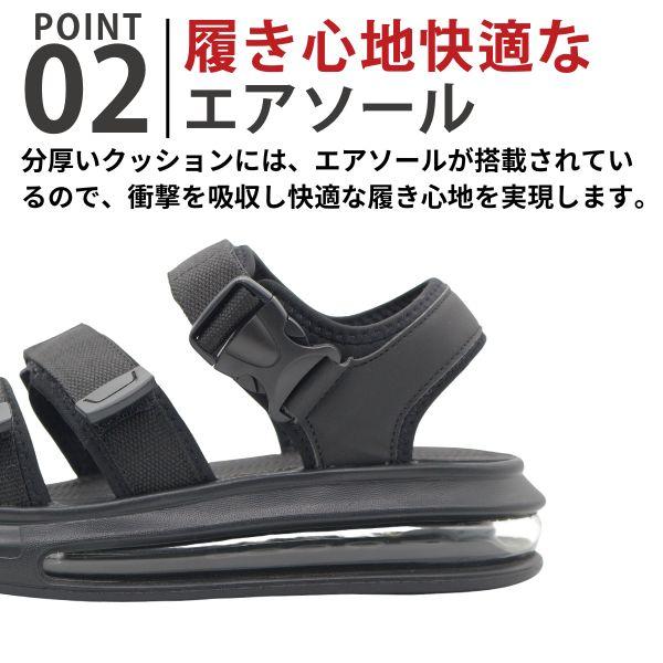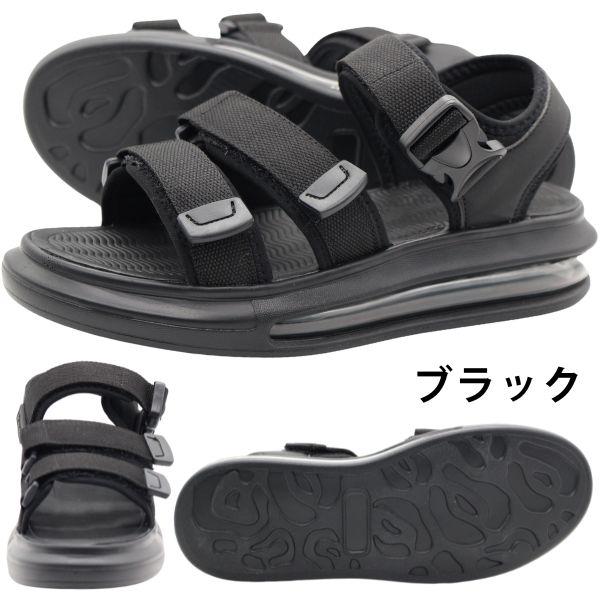 サンダル メンズ 靴 スポーツサンダル 黒 ブラック クッション エアクッション バックル 疲れない おしゃれ かっこいい カジュアル スポサン 履きやすい ベルト テープ 夏 海 アウトドア プール X run 5811