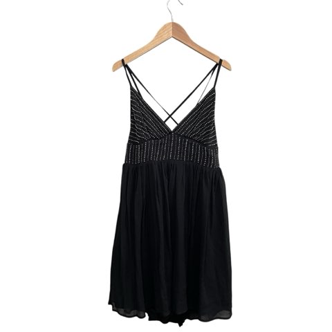 【中古】ザラ ベーシック ZARA BASIC タグ付き キャミソールワンピース トップス ビーズ刺繍 ブラック L レディース