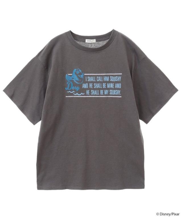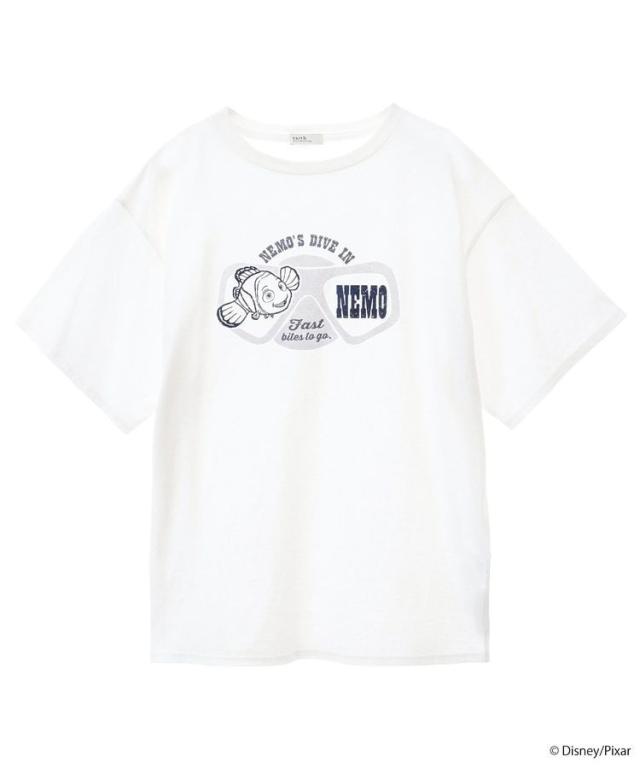 ディズニーの人気アニメーション『Finding Nemo』とコラボレーションしたTシャツ。キャラクターをやや艶のあるシリコーンプリントで表現し、キャッチーなアクセントをプラスしました。着回しのきくオフホワイトとチャコールグレーの2色展開。スカートからパンツまで様々なボトムと相性よく、デイリーに活躍するおすすめのアイテムです。透け感[ややあり]