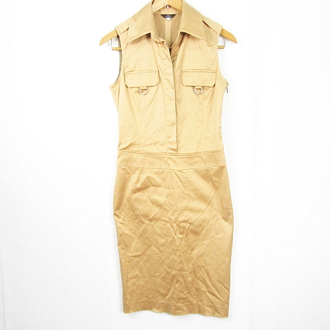 【中古】イネド INED ノースリーブ シャツ ワンピース 膝下丈 ストレッチ レーヨン 綿 7 ベージュ kz11441