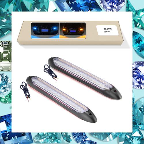 【商品仕様】流れるウインカー(シーケンシャル機能搭載) / 色:アイスブルー・アンバー / セット数:2本 / 電圧:DC12V/ 使用寿命:50000時間以上 / 防水等級:IP68 / 省エネ / 高輝度 / サイズ:長23.5cm*幅2cm