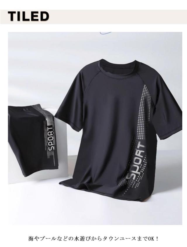 | 半袖Tシャツ+ショートパンツ メンズ 水陸両用水着 海やプールなどの水遊びからタウンユースまでOK! 速乾性に優れた素材なので不快感なく着用いただけます。 | |