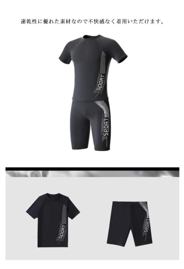 水着 メンズ 水陸両用 ウェットスーツ ラッシュガード フィットネス水着 半袖 Tシャツ ハーフパンツ 上下セット 競技水着 セパレート 日焼け防止 吸汗速乾 UVカット スポーツウェア 体型カバー 男性 男の子 高校生 スイムウェア ビーチ マリンサーフィン 海 海水浴 おしゃれ