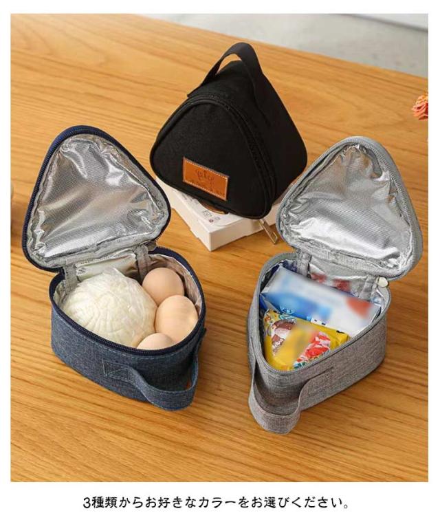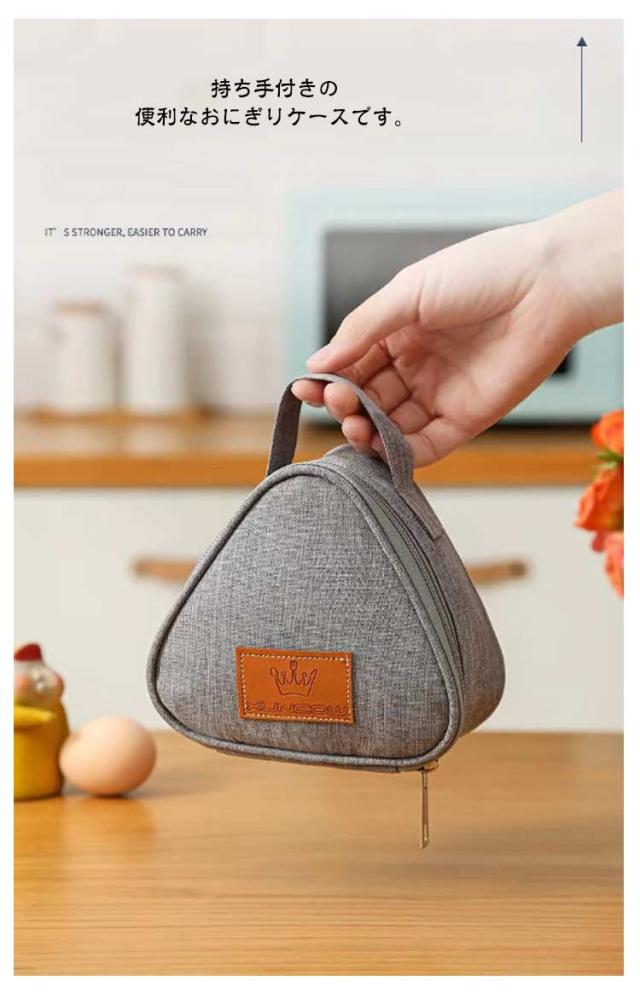 おにぎりケース おにぎりポーチ M/Lサイズ バッグ 鞄 キッチン用品 弁当袋 お弁当グッズ ランチバッグ 三角 おにぎり型 ロゴ 持ち手付き ファスナー 無地 単色 シンプル カジュアル 保温 保冷 撥水 防水 携帯用 持ち運び 軽量 グレー ネイビー ブラック