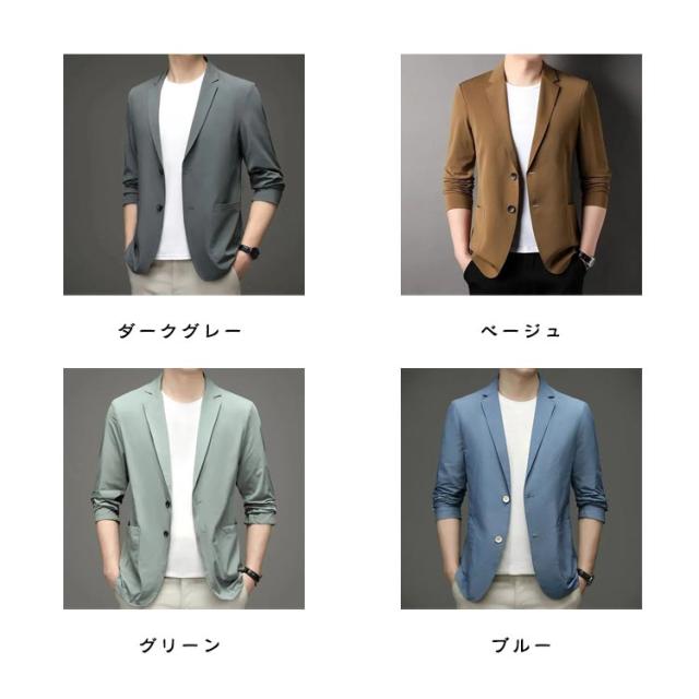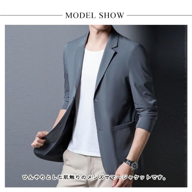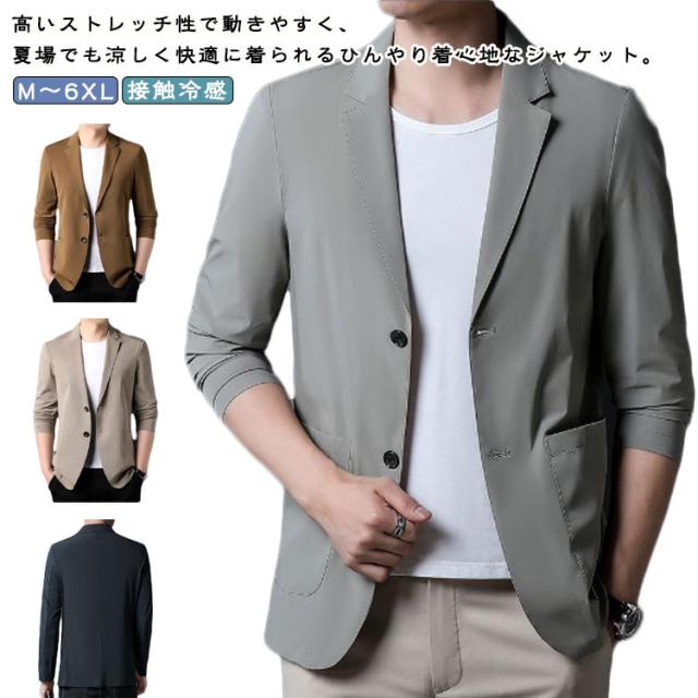 冷感 ストレッチ テーラードジャケット カジュアル M〜6XL メンズ ビジネス アイスシルク 夏 涼感 50代 カーキ ロング サマージャケット 薄手 涼しい 細身 40代 スーツジャケット 春 接触冷感 大きいサイズ テーラード アウター 父の日 白 ひんやりジャケット 送料無料