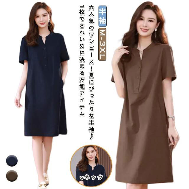 ワンピース 春 きれいめ 半袖 細見え 華奢見え タックワンピース 痩せ見え レディース 夏 膝丈 無地ワンピース 大人女子 洗える レディースファッション ワンピ 夏ワンピ オフィスカジュアル Vネック 30代 40代 50代 送料無料