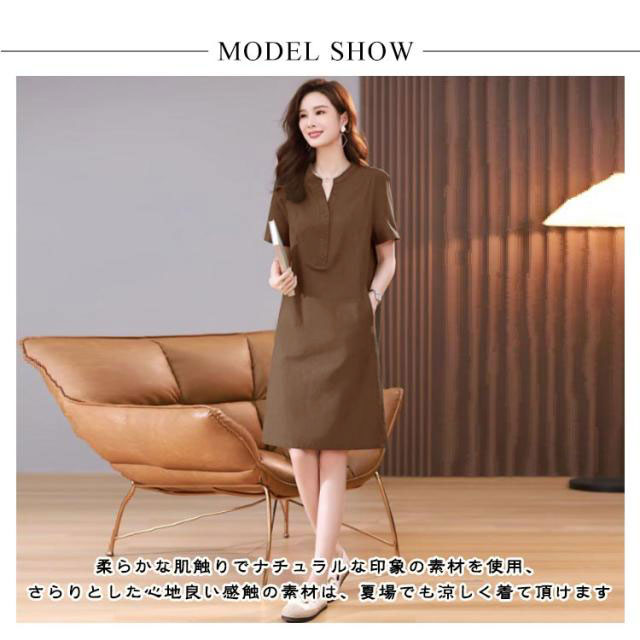 | 大人気のワンピース!夏にぴったりな半袖♪ 1枚できれいめに決まる万能アイテム 柔らかな肌触りでナチュラルな印象の素材を使用、さらりとした心地良い感触の素材は、夏場でも涼しく着て頂けます 全体的にゆとりのあるシルエットがこなれ感をプラスします。 着心地は楽でも女性らしく見せてくれる、一枚で着映えする優秀ワンピです。 | |