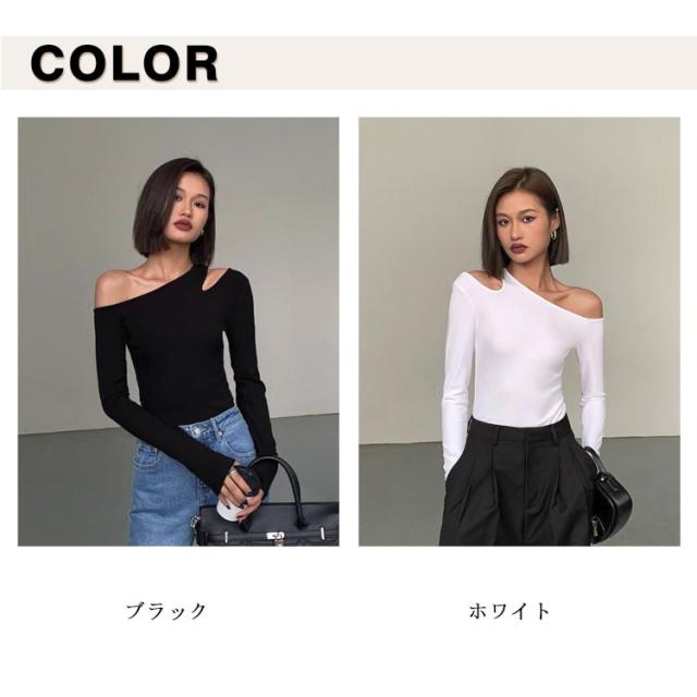 ワンショルダー ニット トップス レディース オフショル オフショルダー リブニット トップス 長袖 ニットプルオーバー セーター ニットソー 秋冬 カットソー 細見え 大人可愛い シンプル おしゃれ カジュアル フェミニン 春 秋 冬 送料無料