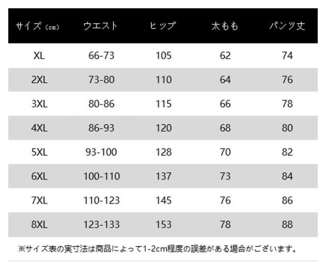| サイズ | XL 2XL 3XL 4XL 5XL 6XL 7XL 8XL |