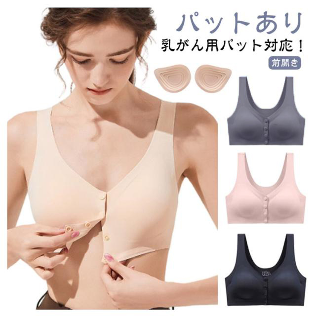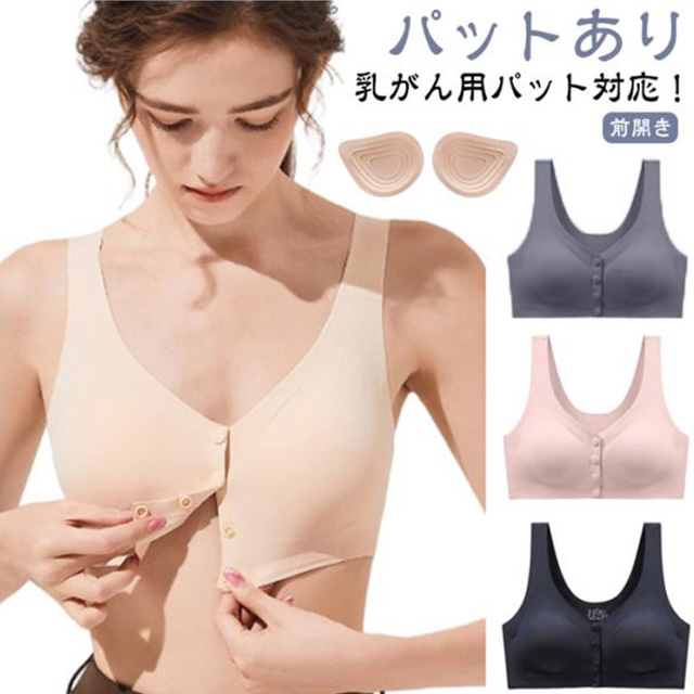 乳がん用ブラジャー 前開き パッド 人工乳房用 ブラ ポケット付き 乳がん用下着 乳癌 全摘 ブラジャー 手術後 フロントホック 前開きブラジャー 術後 ノンワイヤー 大きいサイズ 乳がん 入院 着脱簡単 スナップボタン 前あき 送料無料