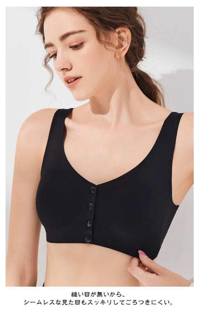 | 【乳がん用パット対応!】【前開き】【パットあり】 スナップボタンだから留め外しが簡単。スナップでしっかり留まり、ズレを軽減します。 縫い目が無いから、シームレスな見た目もスッキリしてごろつきにくい。 ストレッチ性抜群で締め付け感が少なくバスト全体をやさしくホールド。 高い通気性で、汗をかいてもさらりと軽やかな着心地です。 使用方法: まずは乳がんパットを保護カバーに入れる。 ブラジャーのポケットを開く。 乳がんパットをポケットに入れる。 適当な位置を調整する。 | |