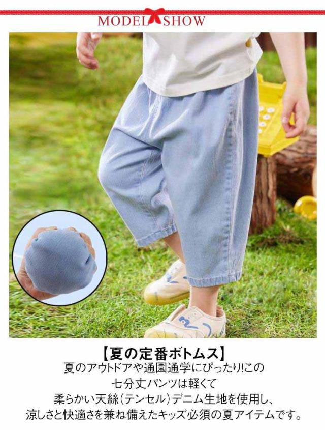ベビー デニムパンツ テンセルデニム 男女兼用 七分丈パンツ デニム ベビーパンツ キッズパンツ 薄手 サルエルパンツ 夏用 外出着 ゆったり 80 90 100 110 120 送料無料