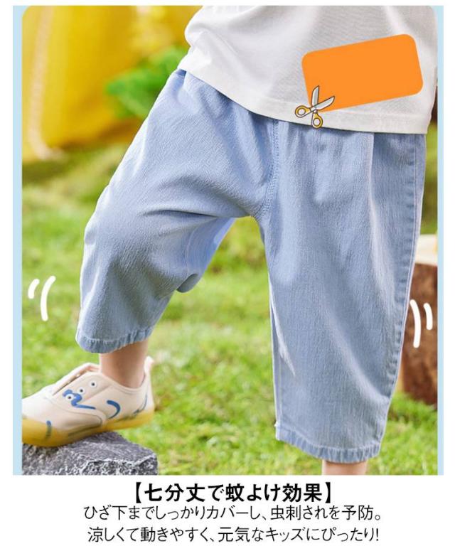 | 【夏の定番ボトムス】 夏のアウトドアや通園通学にぴったり!この七分丈パンツは軽くて柔らかい天絲(テンセル)デニム生地を使用し、涼しさと快適さを兼ね備えたキッズ必須の夏アイテムです。 【七分丈で蚊よけ効果◎】 ひざ下までしっかりカバーし、虫刺されを予防。涼しくて動きやすく、元気なキッズにぴったり! 【滑らかな天絲デニム素材】 通常のデニムより軽く、肌触りもソフト。夏でも快適に過ごせる通気性の良い素材です。 【シンプル&おしゃれなデザイン】 ユニセックス仕様で、男の子にも女の子にも似合うナチュラルなデザイン。Tシャツと合わせやすく、毎日コーデに便利! | |