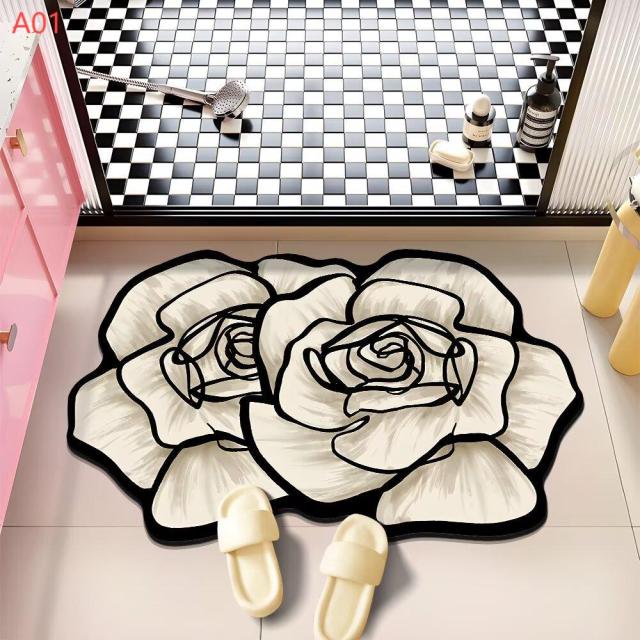 玄関マット マット 北欧 屋外 屋内 室内 花模様 薔薇 洗える 泥除け 汚れ防止 滑り止め 吸水 触さよい 抗菌 バスマット 絨毯 40*60cm 50*80cm 60*90cm 80*120cm