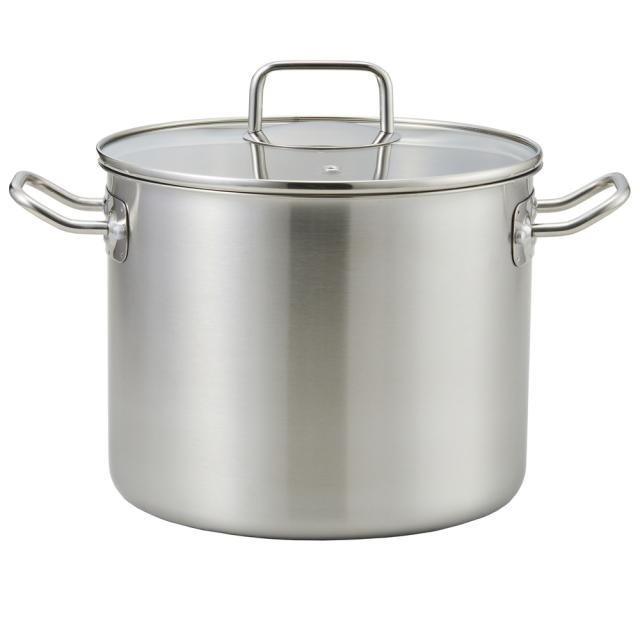 - 材質:本体/18-8ステンレス鋼、蓋/全面物理強化ガラス、ハンドル・ツマミ/ステンレス、内外面/サテン仕上げ