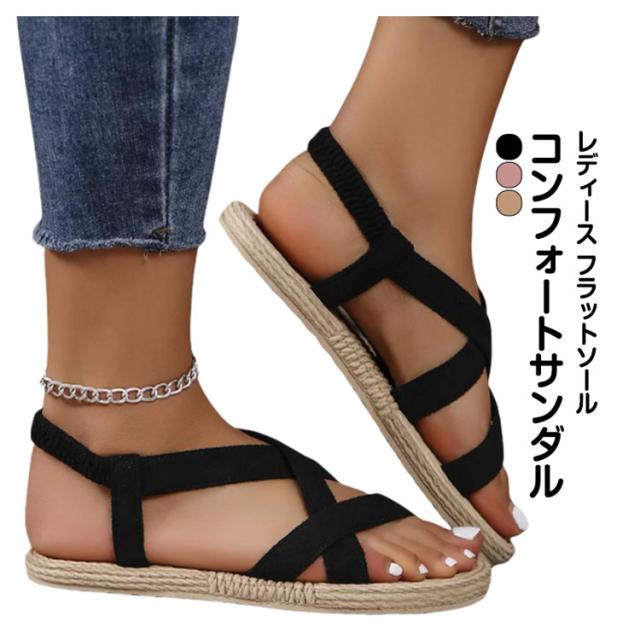 痛くない 美脚 サンダル 小さいサイズ 軽い ベルトデザイン 夏サンダル ペッタンコ サマーシューズ フラット サマーサンダル 疲れない 走れる 歩きやすい サンダル 大きいサイズ ヒール レディース 軽量 春 夏 おしゃれ 旅行