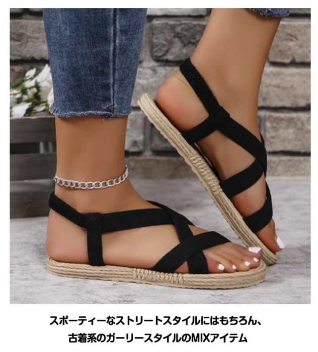 | レディース フラットソール コンフォートサンダル 旬のオシャレを楽しめるフラットサンダル。 足をしっかりホールドするクロスベルトは、歩行時に安定感があり、歩きやすい。 スポーティーなストリートスタイルにはもちろん、古着系のガーリースタイルのMIXアイテム | |
