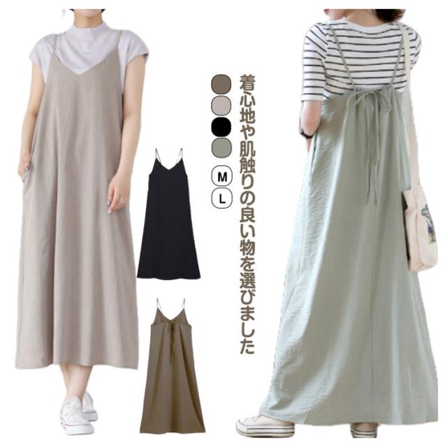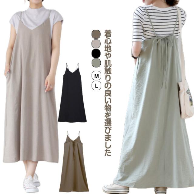 キャミソール キャミワンピース 春 ジャンパースカート 低身長 ロング サロペットスカート キャミソール ノースリーブ 可愛い レディース キャミ キレイメ 20代30代40代 マキシ丈 ワンピ 夏 体型カバー マタニティ シンプル