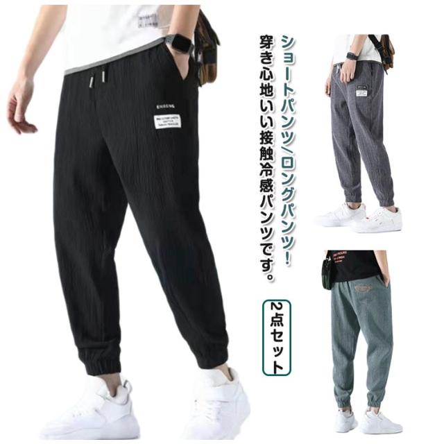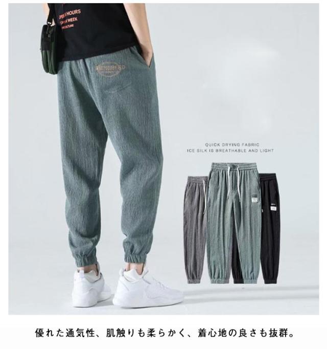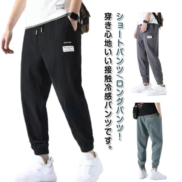 選べる丈 メンズ ロングパンツ 涼感パンツ サルエルパンツ 選べる丈 大きいサイズ M ジョガーパンツ L 春夏パンツ 韓国ファッション 接触冷感 ひんやり アイスシルクパンツ XL 2XL 3XL 4XL