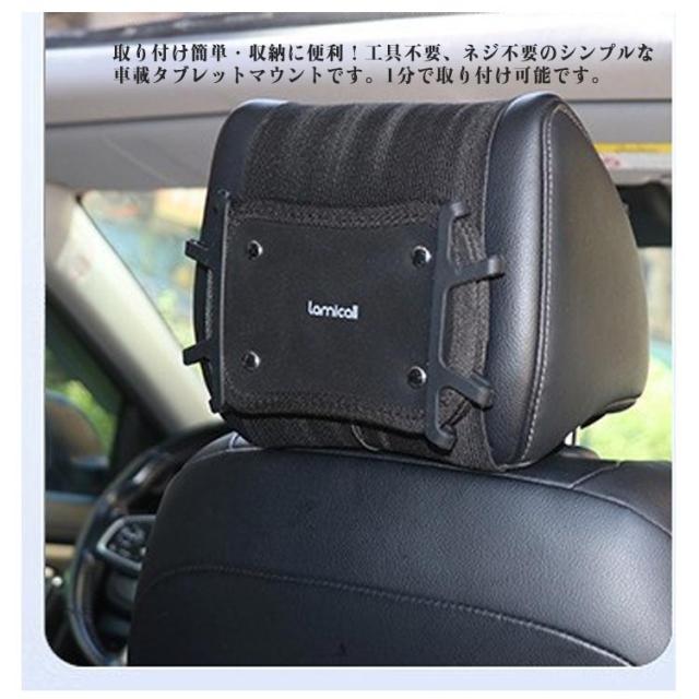 | ヘッドレストに装着!スマホ・タブレット兼用 車載ホルダー 取り付け簡単・収納に便利!工具不要、ネジ不要のシンプルな車載タブレットマウントです。1分で取り付け可能です。女の子でも簡単に取り付けられます。従来の車載タブレットよりも簡単に取り付けられます。 7-10.5インチ対応・ケース付きも使用可能。 大人も子供もタブレットで音楽、映画、カラオケなどを見て歌って楽しく長いドライブ時間を過ごすことができました。渋滞中も退屈することなく待ってられます。 | |